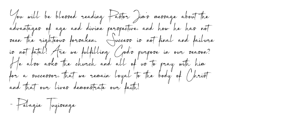 Old age has some advantages. Particularly if you are a Christian and a follower of Jesus Christ. One of these advantages is divine perspective. As you have walked with the Lord over the years, you have developed a perspective on life that many in our world do not have. David, having grown old, could look back at his long life and honestly say that he had never seen those who served the Lord abandoned or forsaken, nor had he ever witnessed their offspring begging by the side of the road or outside the city walls.
